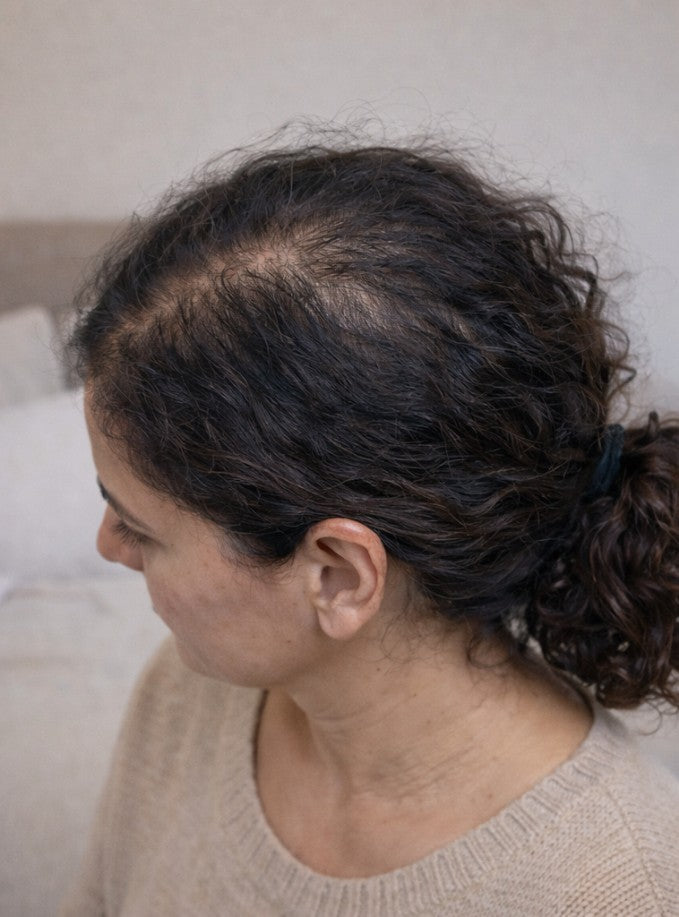 De petits cheveux apparaissent, les zones clairsemées se comblent. Votre densité revient. Et votre confiance aussi.